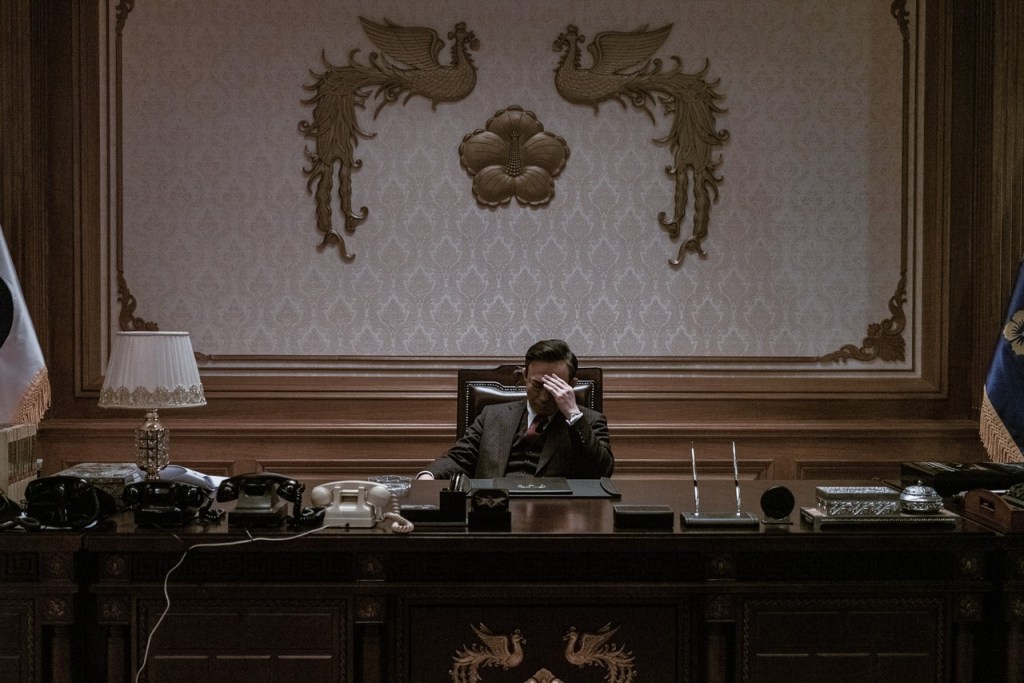 Won Min-ho et son chef opérateur livrent ainsi une vision très esthétique de ces événements. S’il est difficile de savoir ce qui relève de la reproduction historique et de l’imaginaire, il ne fait aucun doute que le cinéaste recherche avant tout la beauté d’un moment de bascule dans l’histoire de son pays. Quelques jours pendant lesquels s’est probablement fomenté un assassinat qui allait remettre en cause l’organisation politique de l’Etat. Et lorsque cet assassinat intervient -et qui est esquissé dès la première scène du film, aucun spoiler ici-, le réalisateur bascule à son tour son approche. Fini la symétrie et la grandeur, les petites discussions et les théories, à l’image de l’histoire du pays, l’assassinat bouleverse aussi la réalisation. Il propose à ce moment-là un plan-séquence magistral qui prend le relai juste après les coups de feu. Une sorte de chaos maîtrisé s’installe et dépeint la brutalité d’un acte et d’une fuite dans un plan ininterrompu où le directeur devenu assassin est confronté à « l’après ». Il n’est plus respectable ni respecté, il est l’assassin qui a changé l’histoire de son pays. Et cette manière de raconter le meurtre sublime, par la recherche esthétique mais aussi le risque pris avec un plan-séquence qui change complètement l’approche visuelle du film. On pourrait aussi s’intéresser au propos du film et sa douce ironie alors que la fille du Président raconté dans ce long métrage, devenue Présidente à son tour en 2013, a été condamnée à 24 ans de prison en 2018 pour des faits similaires à son père, mais je risquerai de vous perdre.
